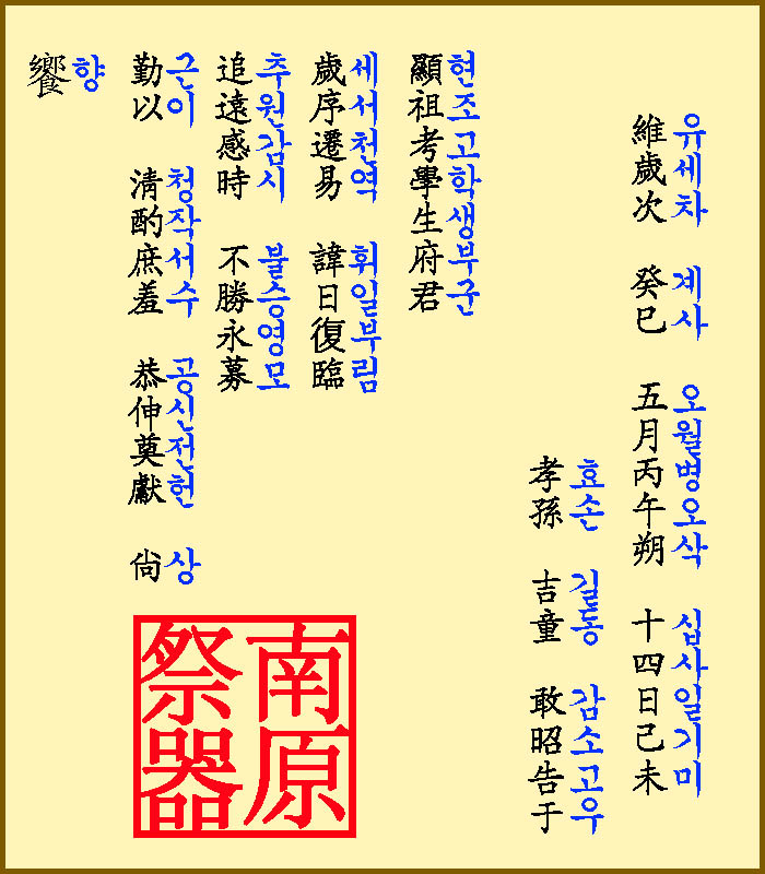 癸巳(계사) : 제사 지내는 해의 천간 (예: 2013년 ->癸巳)