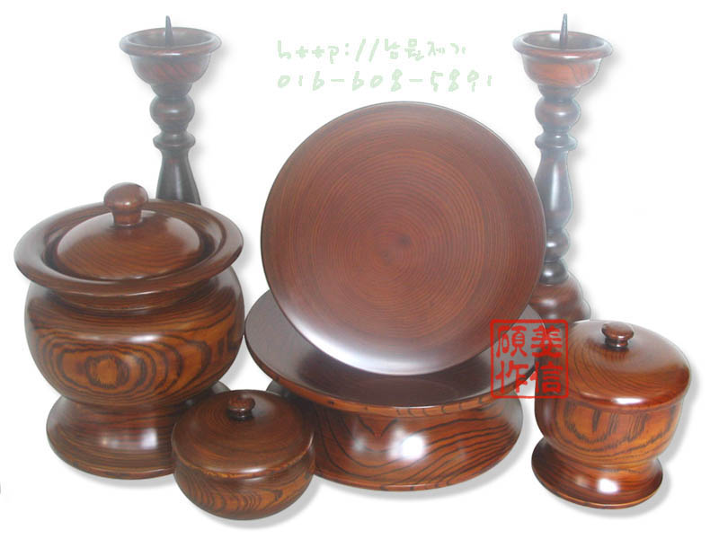 강신석作 투명 정제 옻칠 제기와 생활목기 작품 사진