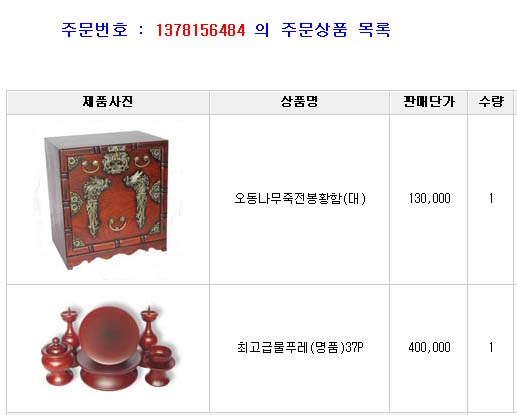 차수점님! 주문 감사합니다. ::: 주문확인 0 19358 0 2013-09-03 12:27:14 위와 같이 주문하여 주셔서 감사드립니다. 항상 건강하시고 행복한 명절 보내시기 바랍니다. 0