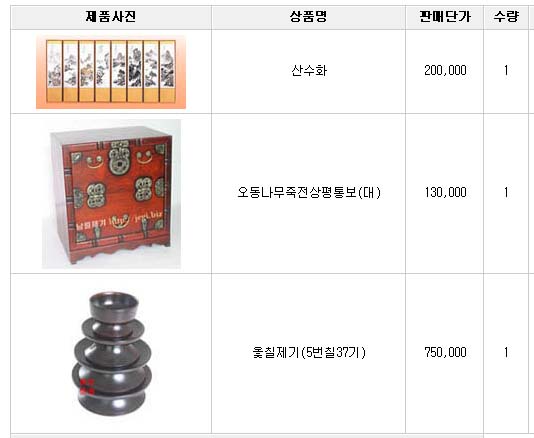 계양 이진구님! 옻칠제기 주문 감사드립니다. 주문확인 0 11583 0 2012-09-11 10:56:05 다음과 같이 주문하여 주셔서 감사드립니다. 항상 건강하시고 행복하세요. 추석명절 즐겁게 보내시길.... 0