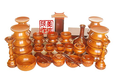제사를 간소하게 지내시려는 분들을 위해 기존 37P에서 21P로 수량을 줄여 만든 세트입니다. 국산 참물푸레 통나무 백골을 사용하였으며 가운데 원이 없는 완전 민자 고급형 디자인입니다. 전통방식 수작업의 반무광 무전(테두리 없음)이며 깔끔한 칠 작업으로 우아하고 은은한 대춧빛이 어우러져 고급스러움을 더 하였습니다.
